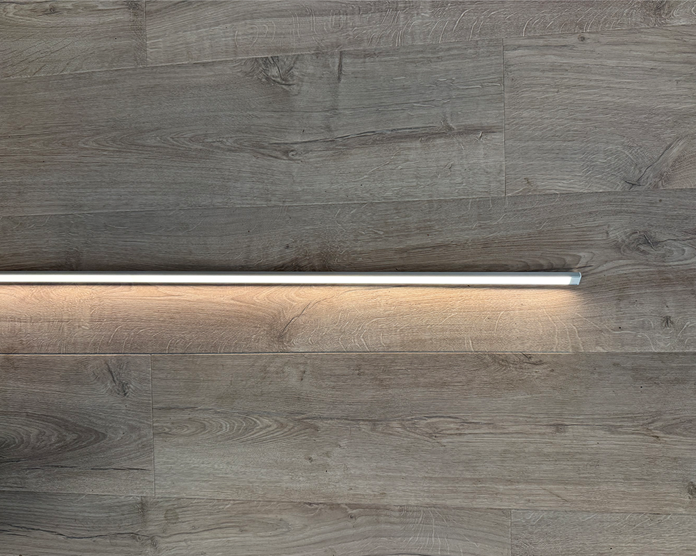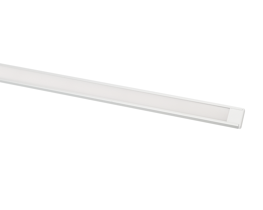Complete under-cabinet kit with a pre-installed LED strip in a slim aluminum profile and driver for phase dimming. Available in two lengths: 595mm and 1195mm. Supplied with a 1.5m cable and quick connector between sections and LED strip for easy installation.