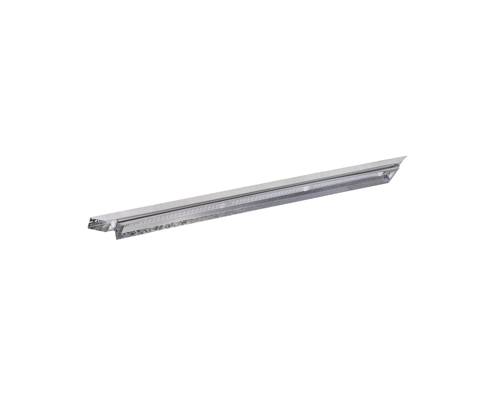 Made of sheet metal with glare protection in PC. The luminaire is available as ON / OFF or with DALI. For mounting on ceiling alternatively with brackets. Gable with quick-connect terminal block and double knockouts for easy forwarding. Suitable for industrial premises or buildings with high ceilings.