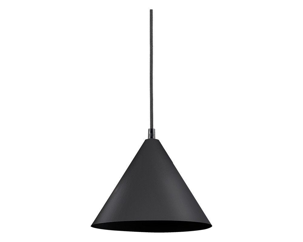 Pendelarmatur som levereras komplett med svart tygkabel. Armaturen går att specialbeställas i valfri kulör på armatur och kabel. Lämplig för recetion, caféer barer etc.