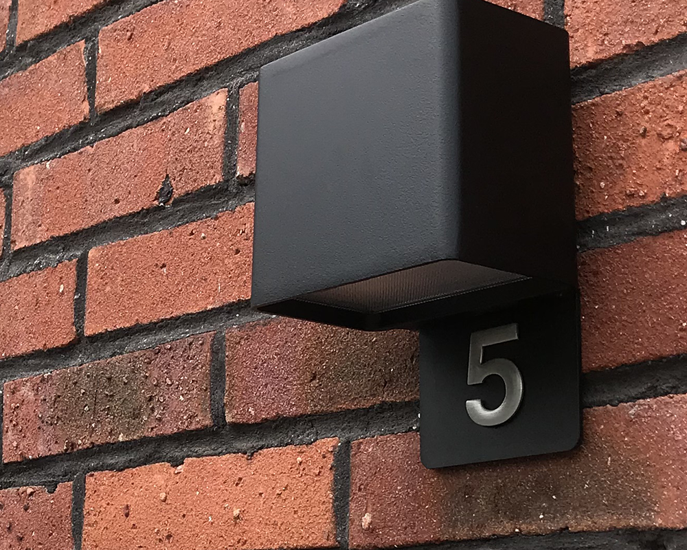 Väggarmatur som passar för offentlig såväl som privat miljö. Robust stomme anpassad för det nordiska klimatet tillverkad i aluminium med ett mikroprismatiskt bländskydd. Bakstycket har två in- och utgångar, samt snabbkopplingsplint för enkel installation, möjlighet att monteras med utanpåliggande kabel. Armaturen är bestyckad med en utbytbar LED-enhet. Armaturen har möjlighet till kundanpassning och går att komplettera med tillhörande nummerskylt.