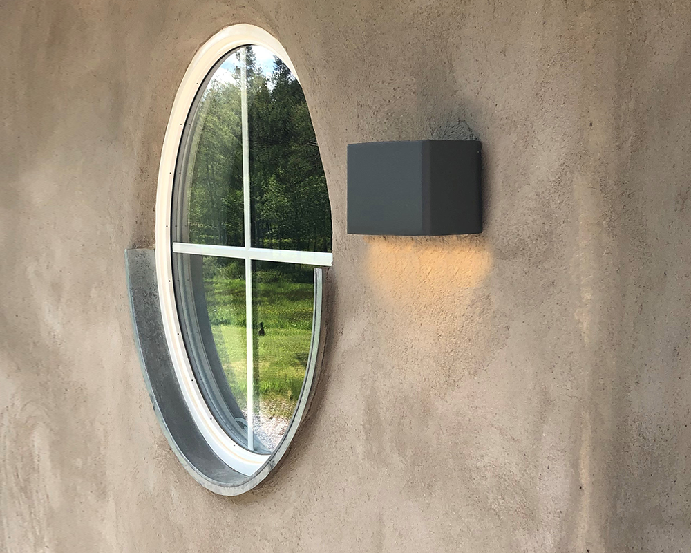 Väggarmatur med en stomme i aluminium med ett mikroprismatiskt bländskydd. Bakstycket har två in- och utgångar, samt snabbkopplingsplint för enkel vidarekoppling. Möjlighet att komma med utanpåliggande kabel. Armaturen är för inom- och utomhusbruk IP44, passar för bruk både i privat och offentlig miljö.