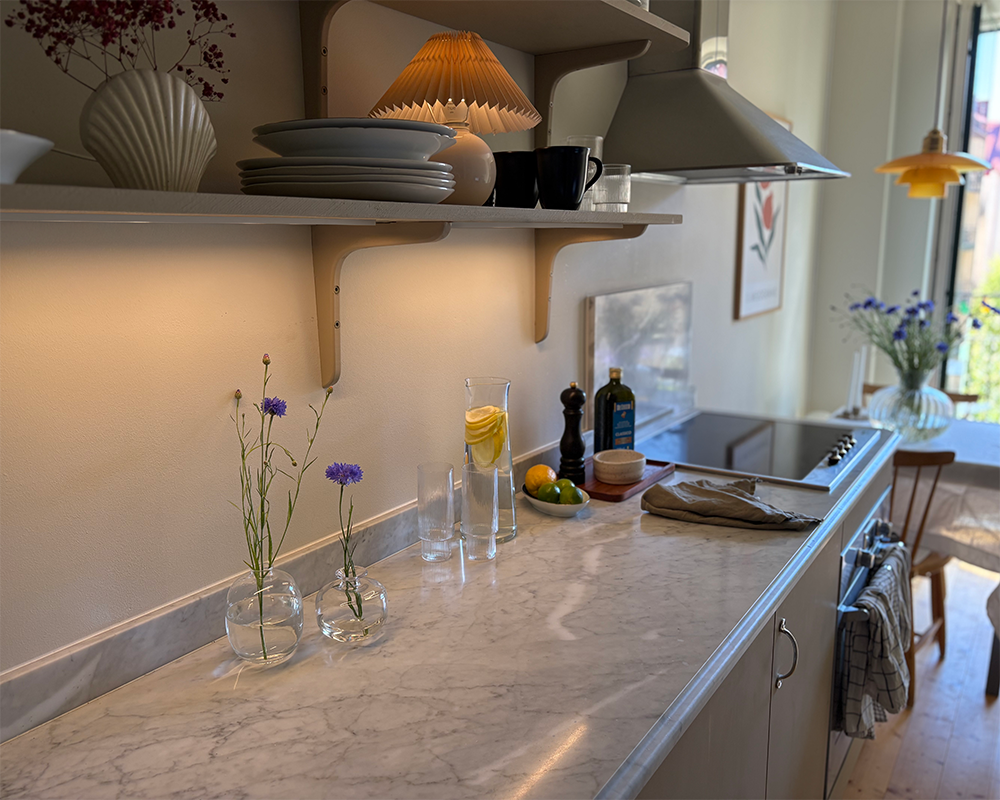 Komplett underskåpskit med förmonterad LED-strip i tunn aluminiumprofil med drivdon för fasdim. Finns i två längder: 595mm och 1195mm. Levereras med 1,5m kabel med snabbkoppling mellan och LED-strip för enkel installation.