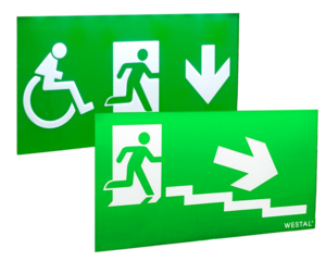 Komplett allt i ett armatur med samtliga piktogram för dubbel eller enkelsidig. För tak eller vägghängning (ingår). DALI-styrning; kompatibel med DALI 2. Svensktillverkad. Med Batteribackup. Kan anpassas med valfritt piktogram.