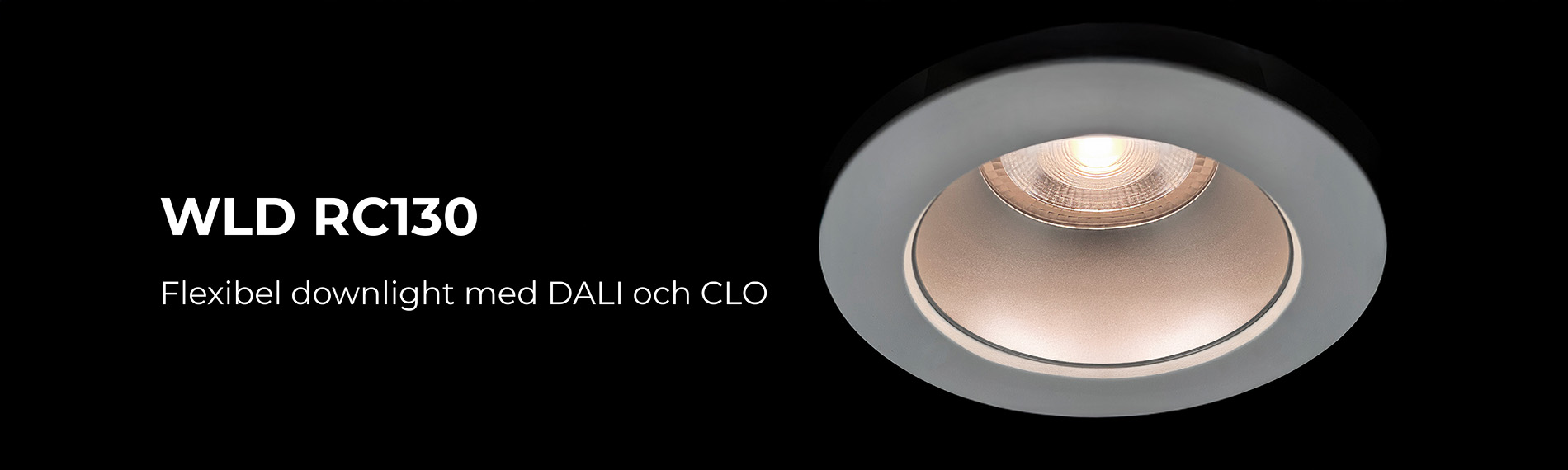 WLD RC130 är en stilren, flexibel och modern downlight med DALI-styrning och CLO (Constant Light Output) vilket säkerställer en jämn ljusnivå under hela armaturens livstid.